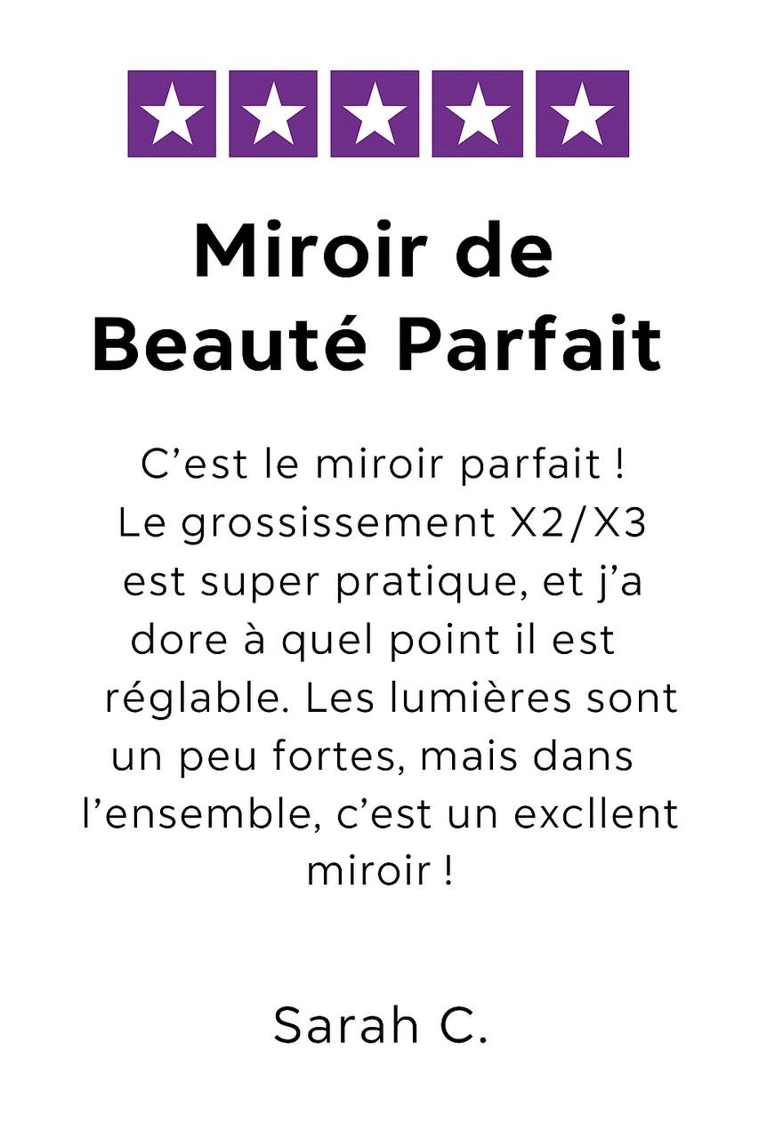 Avec plus de 30 000 clients satisfaits et ce nombre ne cesse de croître chaque jour, vous pouvez faire confiance aux produits et au service de KayMirror .Toutefois, si vous n’êtes pas satisfait, vous pouvez toujours nous contacter et nous trouverons une solution ensemble !